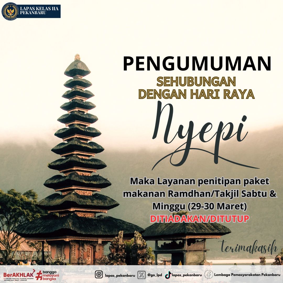 Pekanbaru, INFO_PAS – Sebagai wujud komitmen dalam pemenuhan hak-hak setiap warga binaan, Lembaga Pemasyarakatan (Lapas) Kelas IIA Pekanbaru memberikan Remisi Khusus dan Pengurangan Masa Pidana Hari Suci Nyepi Tahun Baru Saka 1947 dan Hari Raya Idul Fitri 1446 H bagi para warga binaan yang beragama Hindu dan Islam. Acara pemberian remisi dilakukan serentak yang terpusat … Read more
