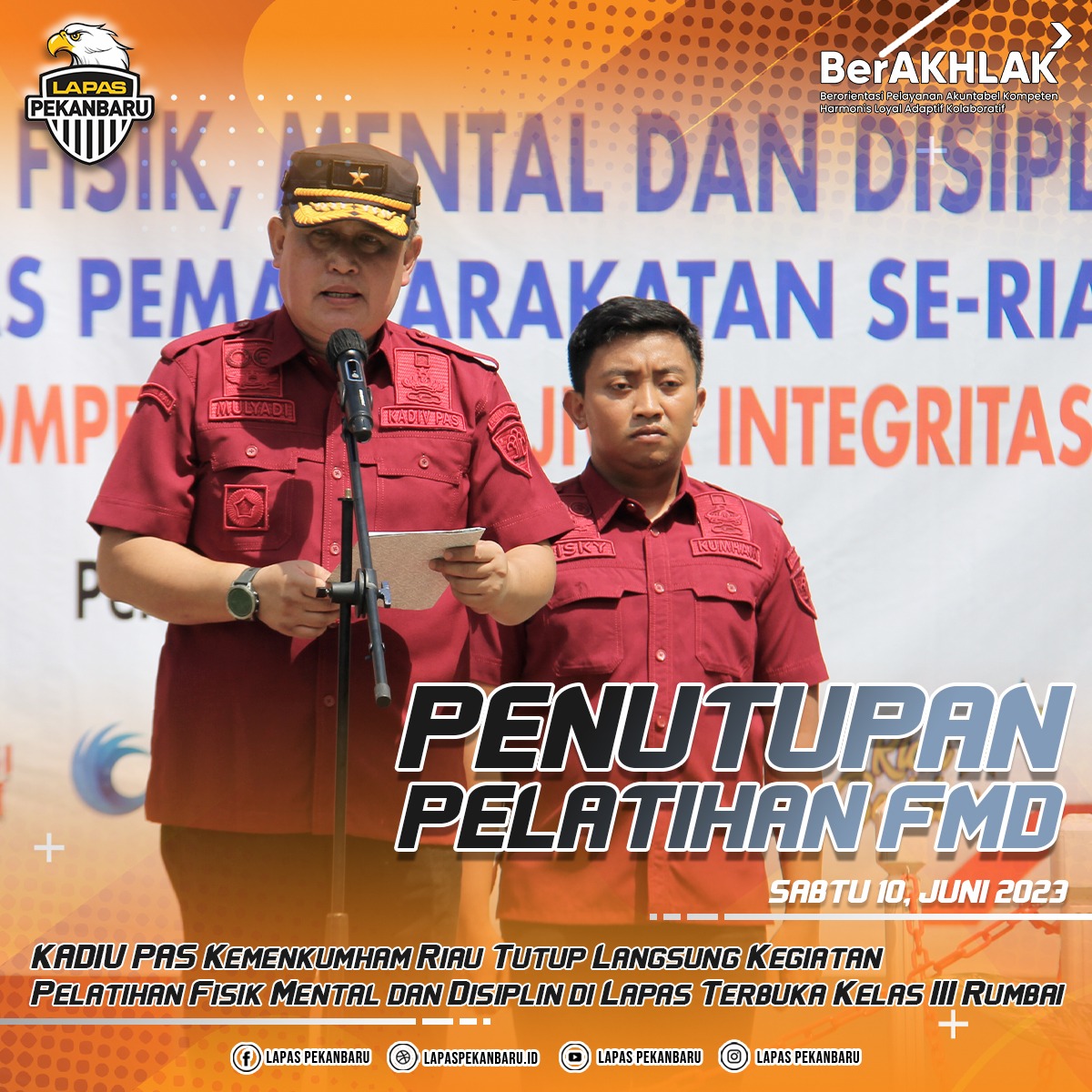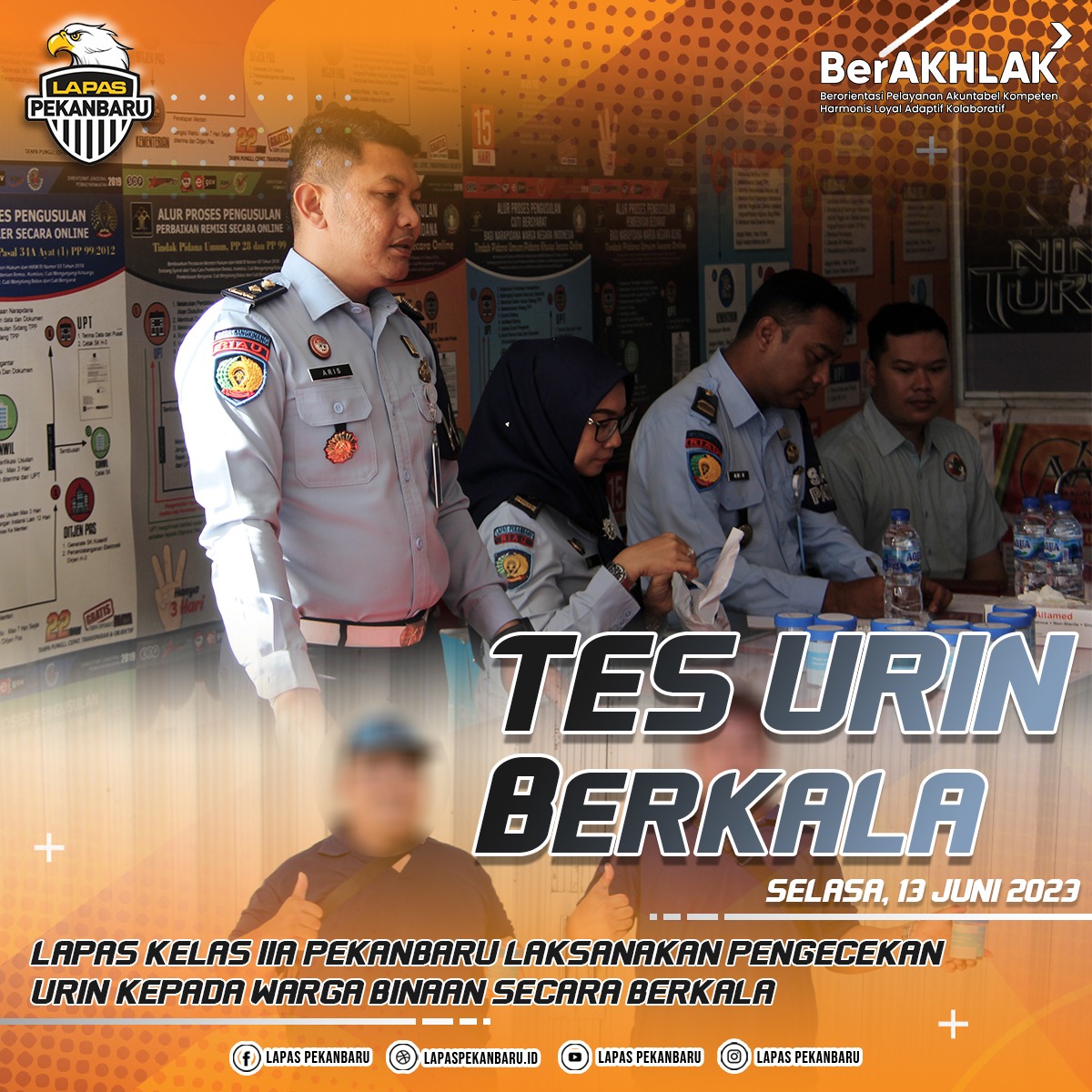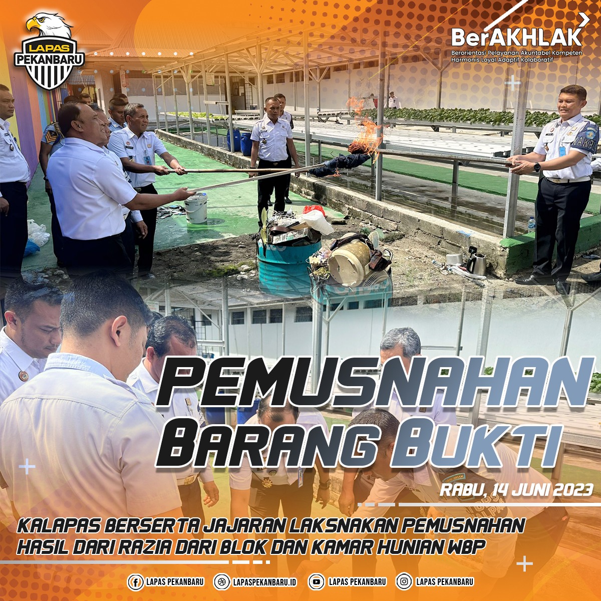 INFO_PAS|PEKANBARU| Dalam rangka mewujudkan Lembaga Pemasyarakatan bebas dari handphone,pungli dan narkoba (HALINAR) , Kepala Lembaga Pemasyarakatan Kelas IIA Pekanbaru dan didampingi langsung oleh Kepala Bidang Pelayanan Tahanan, Kesehatan, Rehabilitasi, Pengelolaan Benda Sitaan, Barang Rampasan Negara, Dan Keamanan Kanwil Kementerian Hukum Dan HAM Riau Subagdo Wulandoro melaksanakan pemusnahan terhadap barang bukti hasil razia kamar hunian, Rabu(14/06/2023). … Read more
