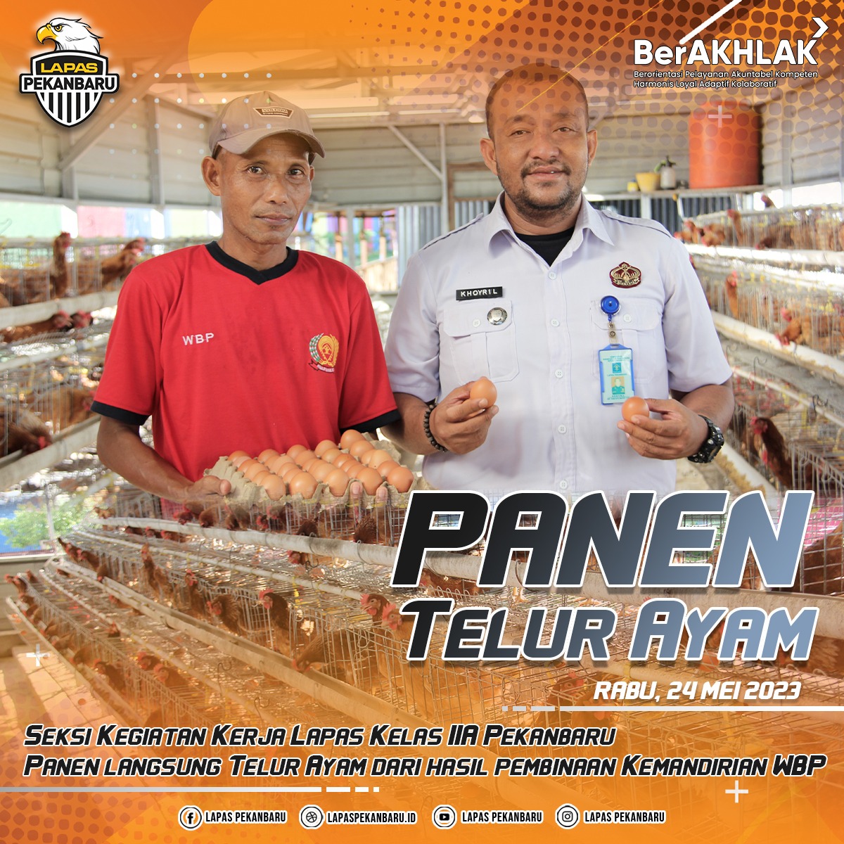 INFO_PAS|PEKANBARU|Lembaga Pemasyarakatan (Lapas) Kelas IIA Pekanbaru awali minggu terakhir Bulan Mei dengan melaksanakan apel pagi dengan penuh khidmat. Apel pagi rutin merupakan media bagi pimpinan untuk memberikan instruksi, evaluasi tugas dan fungsi sebagai Petugas Pemasyarakatan hingga wejangan diluar tugas dan fungsi sebagai Aparatur Sipil Negara (ASN), Senin (29/05/2023). Bertempat di Halaman Kantor Lapas Pekanbaru, … Read more