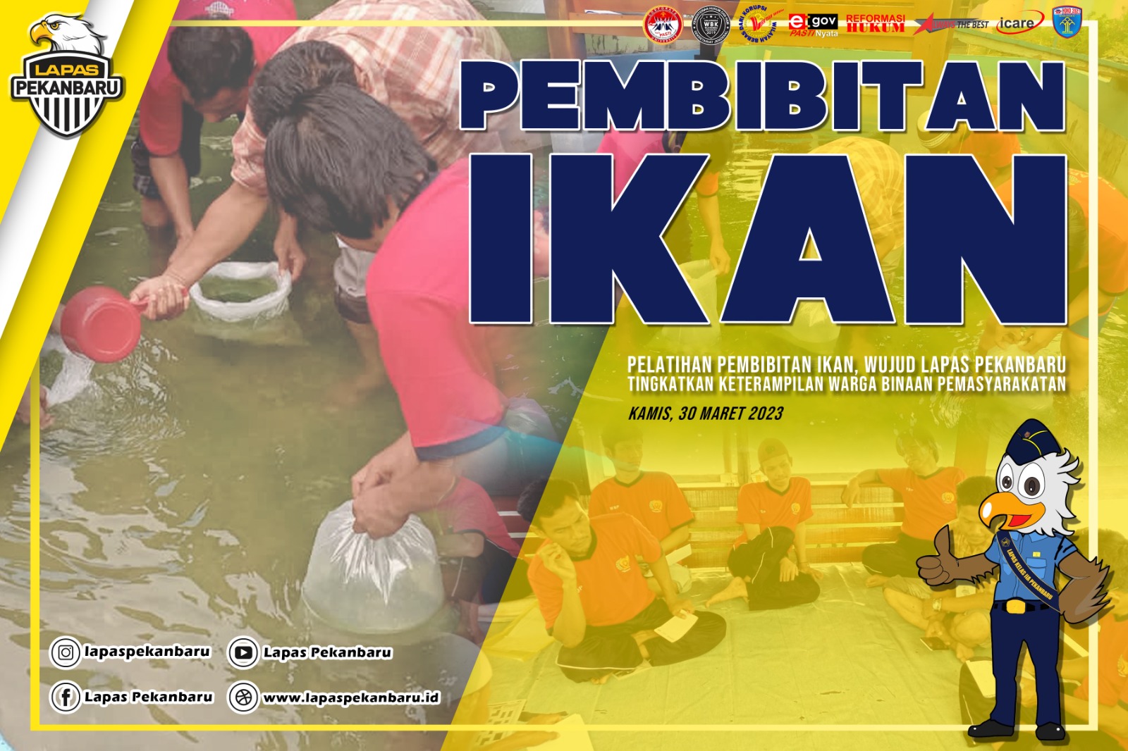 INFO_PAS|PEKANBARU|Pelatihan kemandirian merupakan suatu wadah dalam mengembangkan keterampilan dan minat bakat Warga Binaan Pemasyarakatan (WBP) sebagai bekal mereka untuk kembali dan diterima oleh masyarakat. Lembaga Pemasyarakatan Kelas IIA Pekanbaru melalui seksi Kegiatan Kerja (Giatja) kembali melaksanakan kegiatan pelatihan kemandirian Budidaya Ikan Gurami bagi Warga Binaan Pemasyarakatan (WBP) Lapas Pekanbaru, Kamis (30/03/2023). Bertempat di … Read more