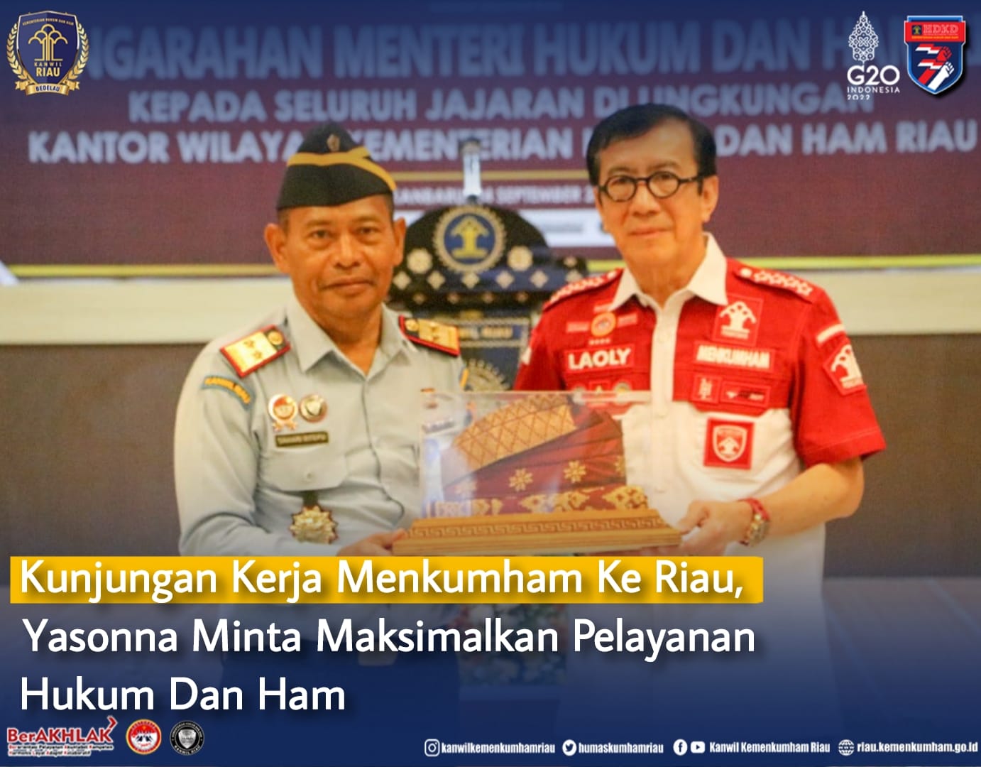 KUNJUNGAN KERJA MENKUMHAM KE RIAU, YASONNA MINTA MAKSIMALKAN PELAYANAN HUKUM DAN HAM