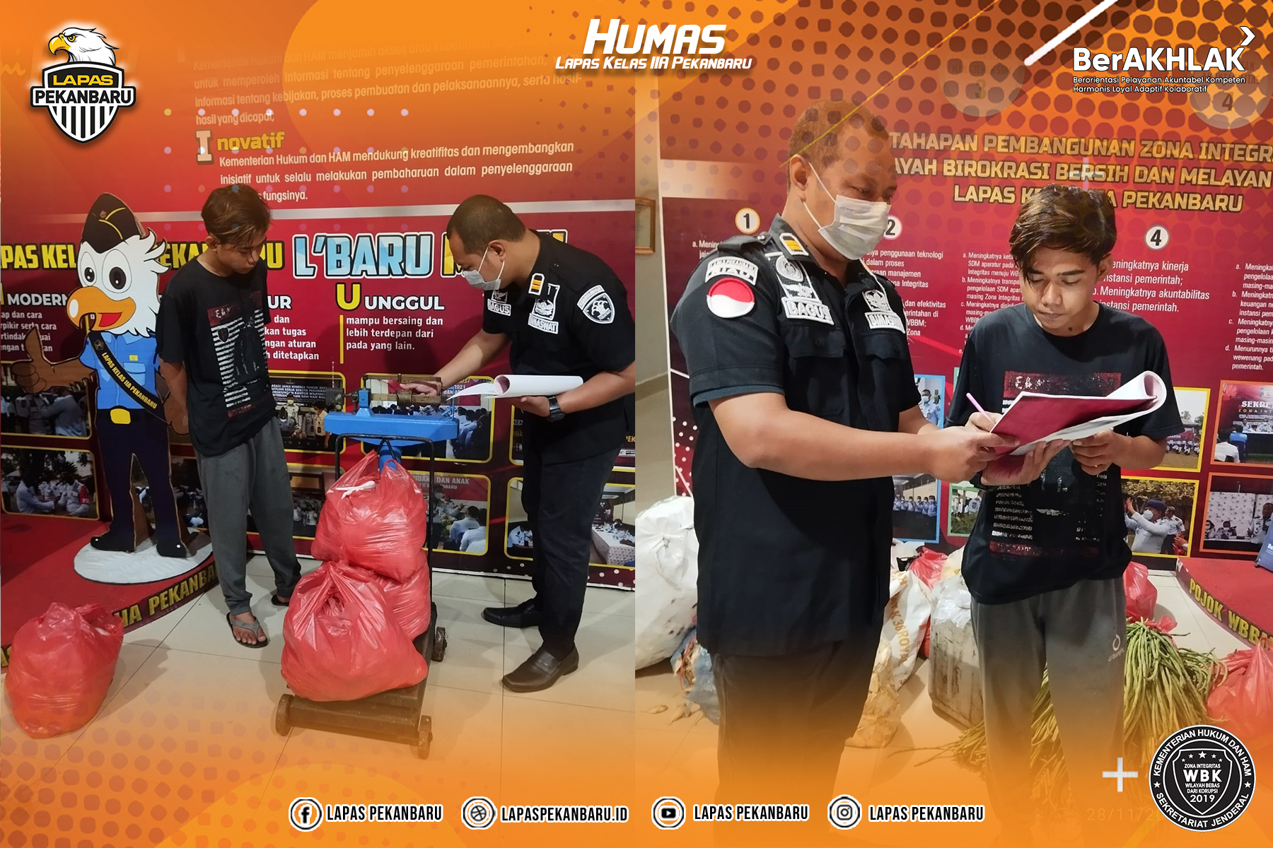 Pekanbaru, INFO_PAS – Sudah menjadi kewajiban setiap Petugas Pemasyarakatan memberikan pelayanan yang optimal kepada Warga Binaan Pemasyarakatan (WBP) salah satunnya adalah pemberian makanan yang baik dan layak. Oleh sebab itu dalam rangka menjaga mutu bahan makanan tersebut, Selasa pagi (28/11) Petugas Lembaga Pemasyarakatan (Lapas) Kelas IIA Pekanbaru melakukan pengecekan bahan makanan yang masuk ke dalam Lapas. … Read more