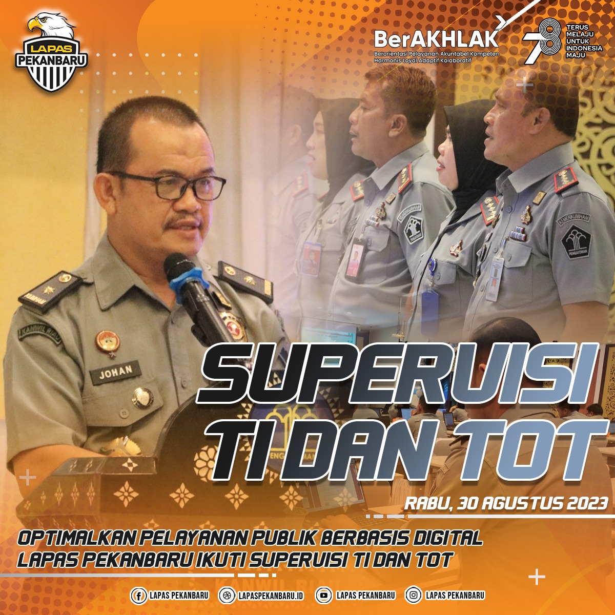 OPTIMALKAN PELAYANAN PUBLIK BERBASIS DIGITAL, LAPAS PEKANBARU IKUTI SUPERVISI TI DAN TOT
